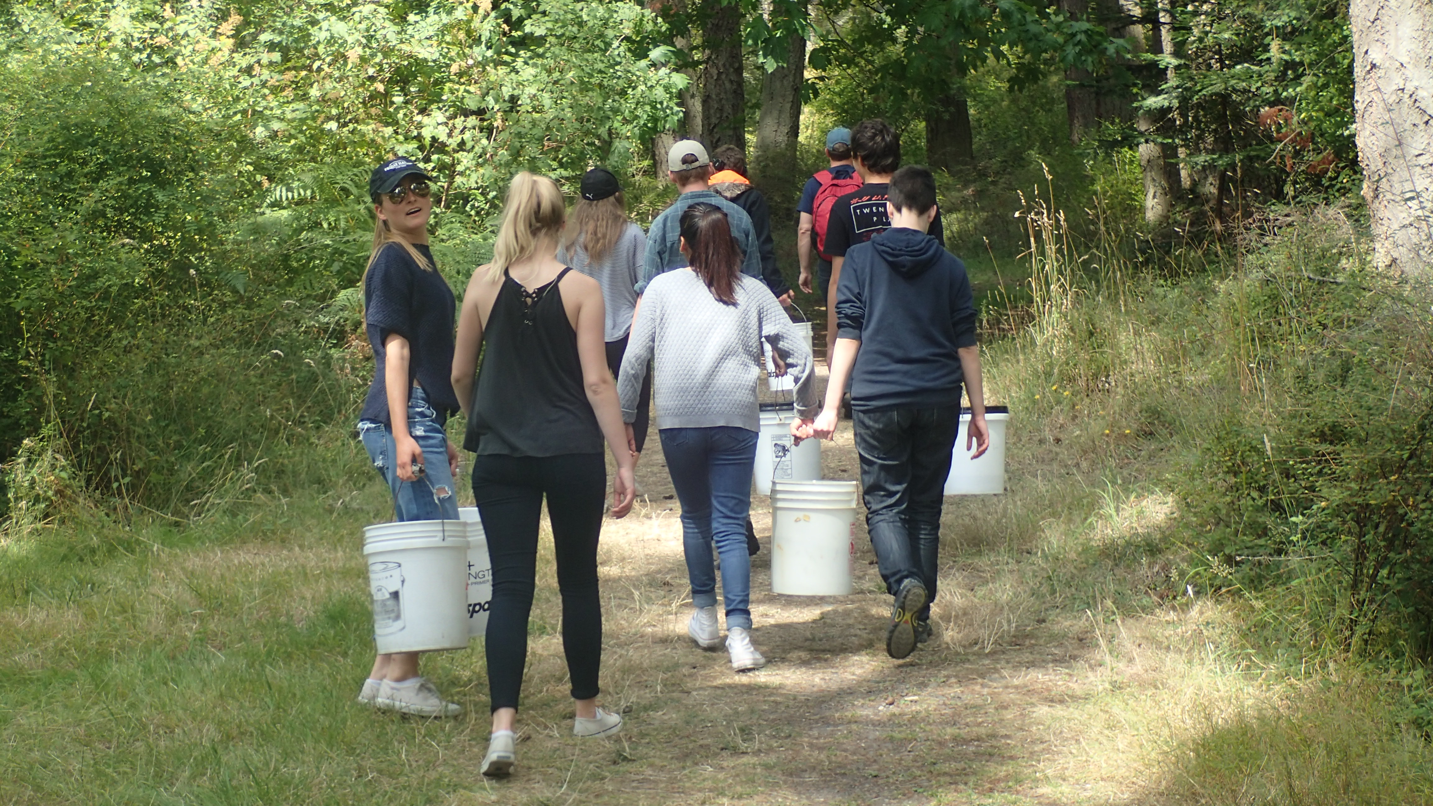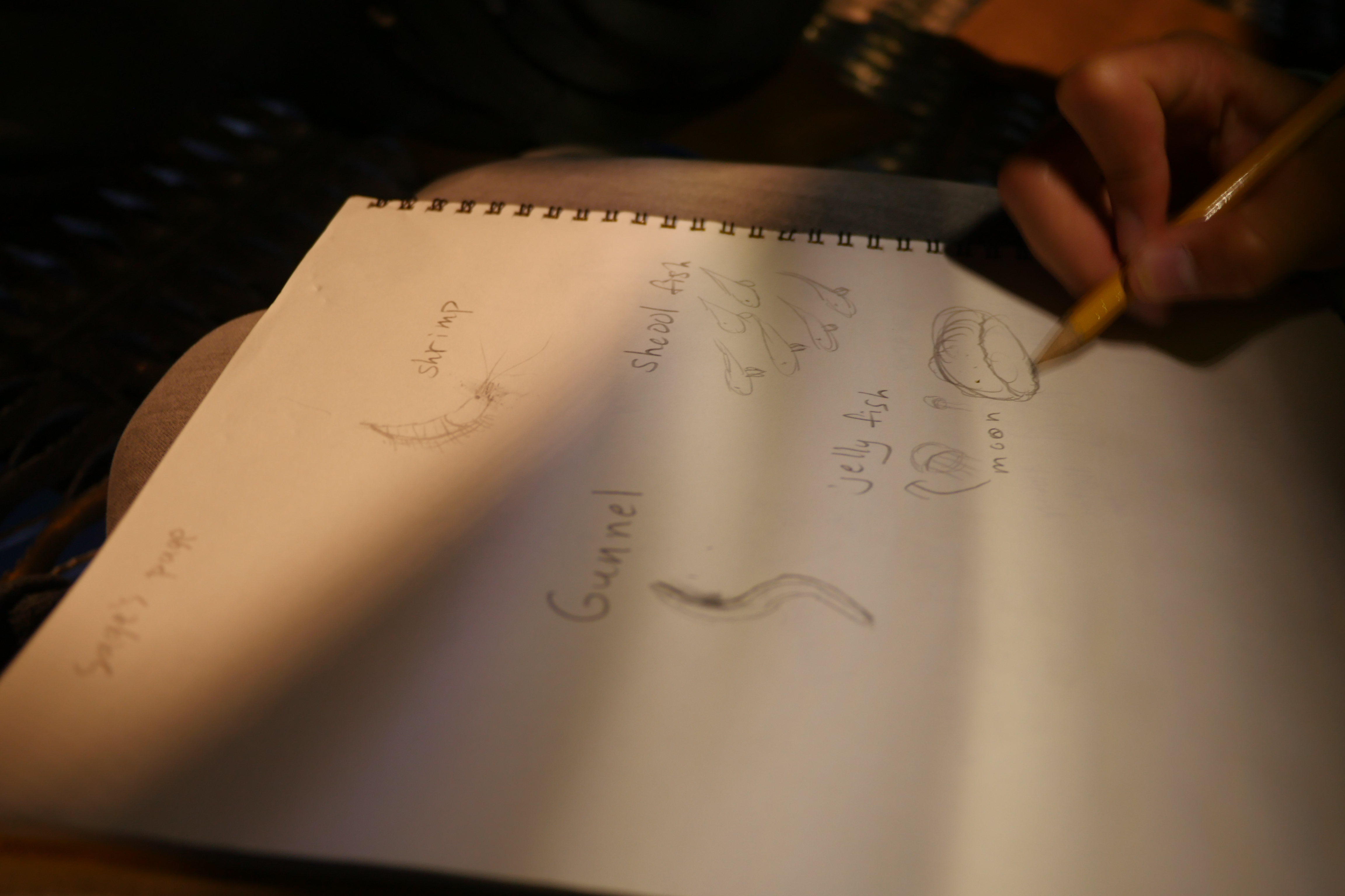 They spent the last several weeks in a wet lab where we could use them to draw or study them. It was time to send them home. We collected our invertebrates and went on a 20 minute hike to a beach near the FH Labs where we released them.