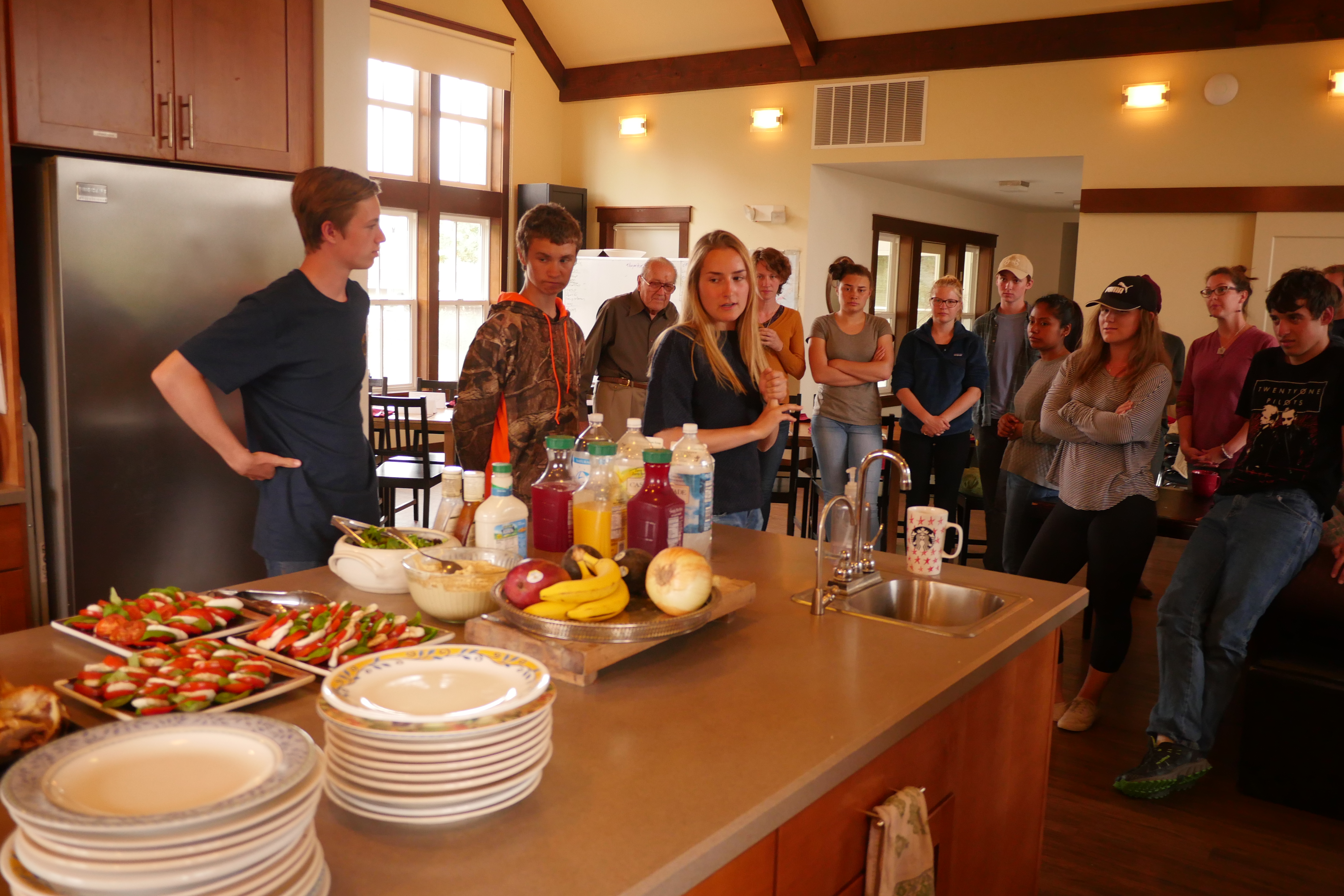 At 5 PM, we returned to campus and started preparing for dinner with our guests, Drs. Rebecca Guenther and Colette Feehan. For dinner we had quinoa salad, caprese, and roasted chicken.