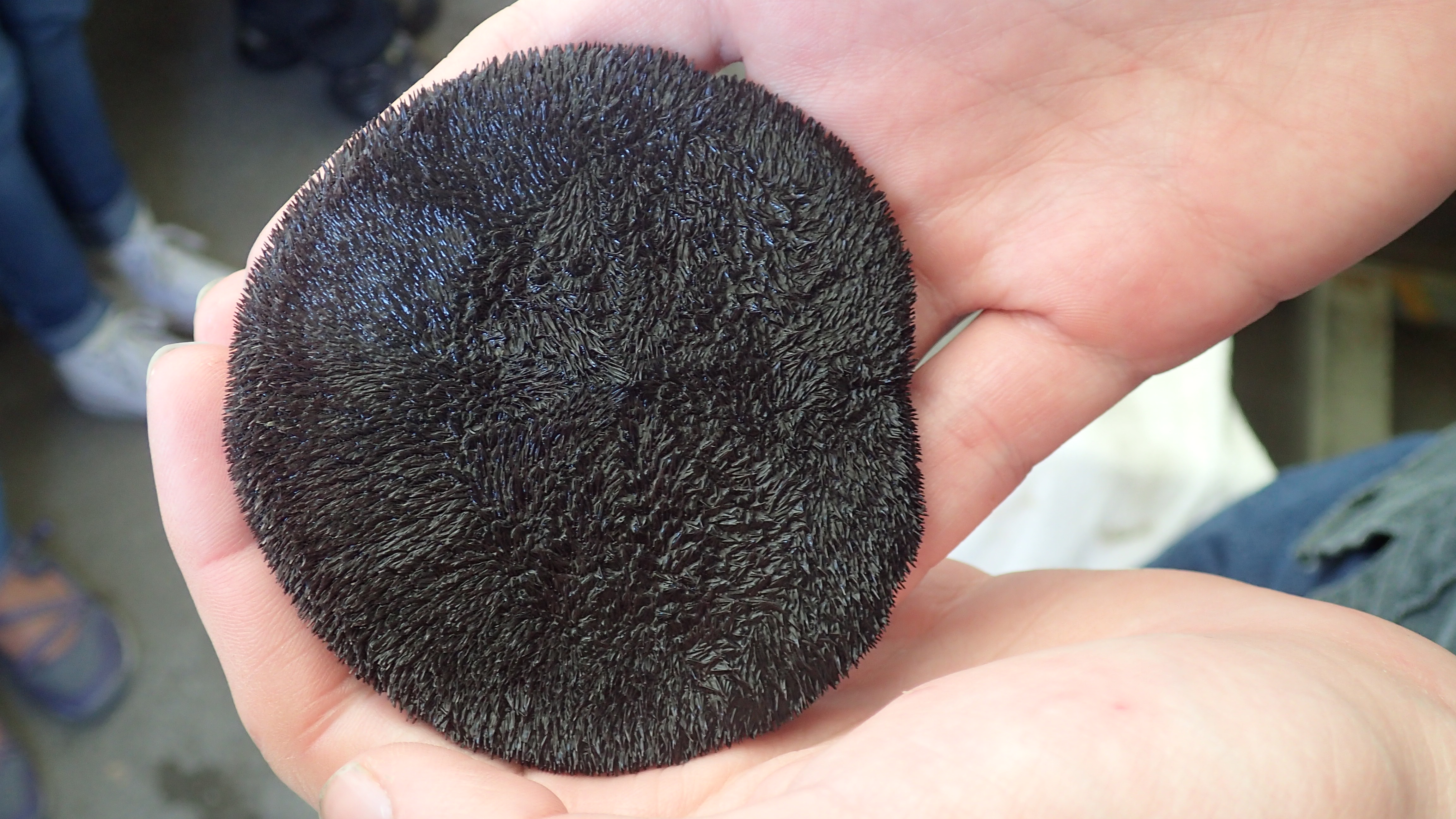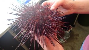 The urchins were not cooperating, it is past their season, so instead, sand dollars were used in their place.