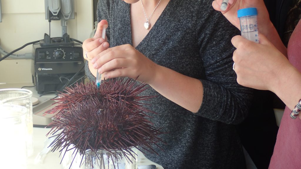 After lunch, we departed for the Friday Harbor Labs where we learned about sea urchin and sand dollar fertilization. Dr. Colette Feehan is an expert on larvae feeding habits and their effect on ocean ecology. Today, Colette and Friday Harbor Laboratories ‘Young Investigator Prize’ winner Beatrice Grauman-Boss were embarking on a new study to learn more about larval predation.