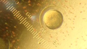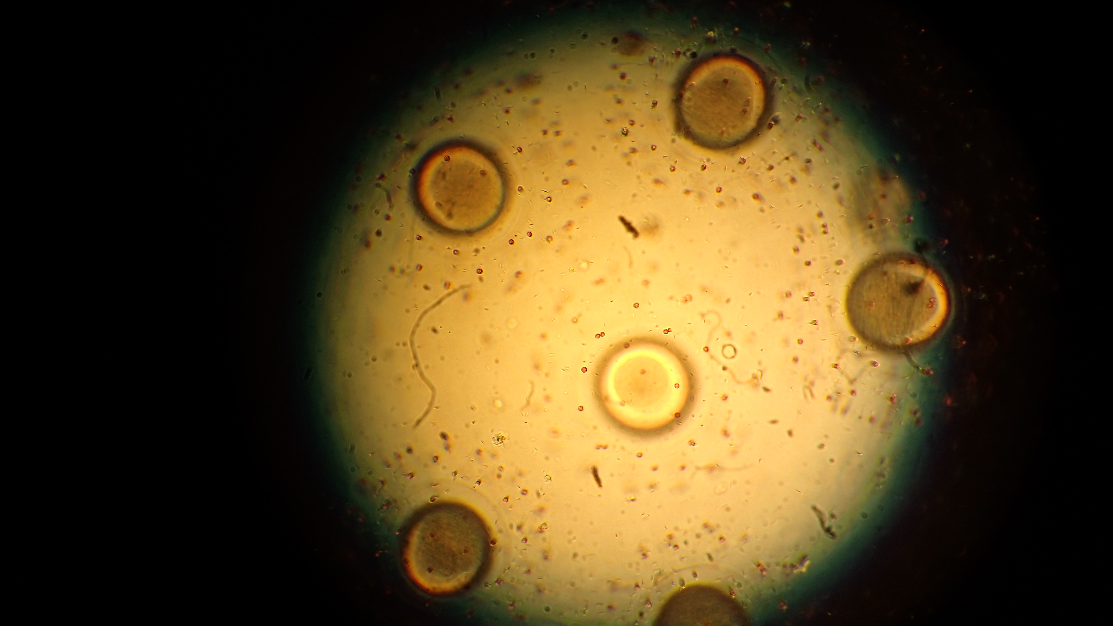 We then placed some eggs and sperm on slides and looked at them under a microscope.