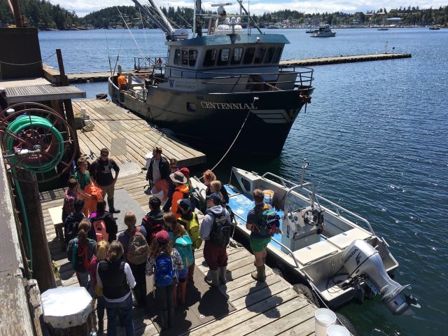 Tonight we were lucky to have Beatrice Grauman-Boss and Lauren Lubeck as dinner guests. They are both undergraduates who are currently working on a project at the Friday Harbor Labs. Lauren and Beatrice taught us about sand dollar larvae cloning, which is epic! They taught us with an impassioned energy about budding, showed us pictures of the buds they had cultivated in their lab, and explained to us the process of cloning as a defense mechanism. It was truly inspiring. We can’t wait to hear more tomorrow when we visit them at the Friday Harbor Labs.