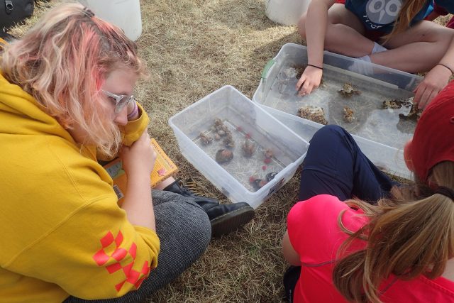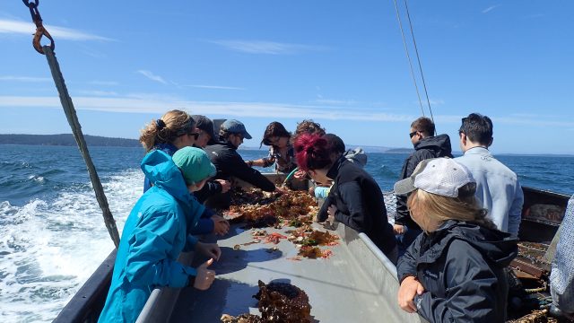 After a quick lunch, Megan Cook came over to our dorm to teach us about scientific communication and how to connect with an audience. She taught us to write brilliant, emotional, and grammatically correct sentences like this: “First we woke up, the breakfast was awesome, I love cereal, the research was excellent, I love peanut butter and jelly sandwiches, that was my lunch, it was amazing”, et cetera. In all truth, her lesson was incredibly useful, and taught us a lot about writing compelling narratives. Afterwards, we journeyed to the mythical Friday Harbor Labs to assist Sasha Seroy in an experiment with Lacuna, or small intertidal snails, focusing on their teeth and food sources. Some of us got extremely lucky and observed some of these snails begin their feeding process by sticking their toothy radulas into kelp leaves.