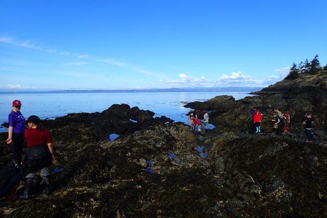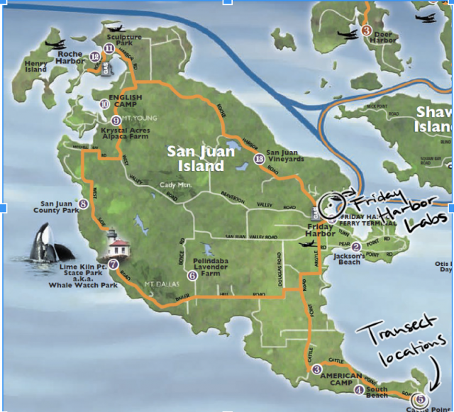Today’s early West Coast morning started as many others do: with a thick layer of gray clouds covering the sky. Though some of us- Maya, we’re looking at you- were optimistic during these early hours, insisting that the clouds would burn off to reveal golden sunlight, those positive but sorry souls could not have been more incorrect. Our trip to Cattle Point involved not sun but instead blustery wind and less than ideal temperatures. Despite Rugby Tim’s constant reminders to “DRINK MORE WATER” and Professor Dobkowski’s insistent “100% NOT rain” weather forecasting, we were cold. Really cold. But what were we even doing out at Cattle Point, anyway?