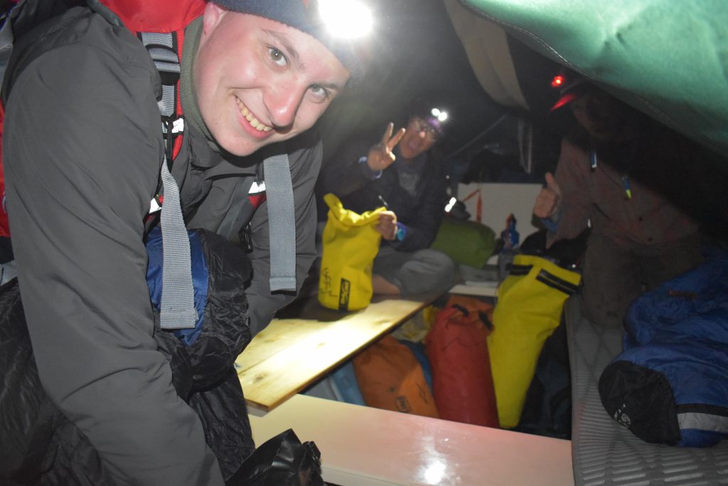 We began our day bright and early by waking up at 5:30 AM, where a soft-colored sunrise greeted us. Those who slept on the boats greeted the day eagerly and began to ferociously take down the boat covers. Everyone who had slept on land took down tents and packed up their personal gear, which were then fire-lined onto the boats. After much trial and error, everyone safely climbed up onto the boats.
