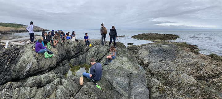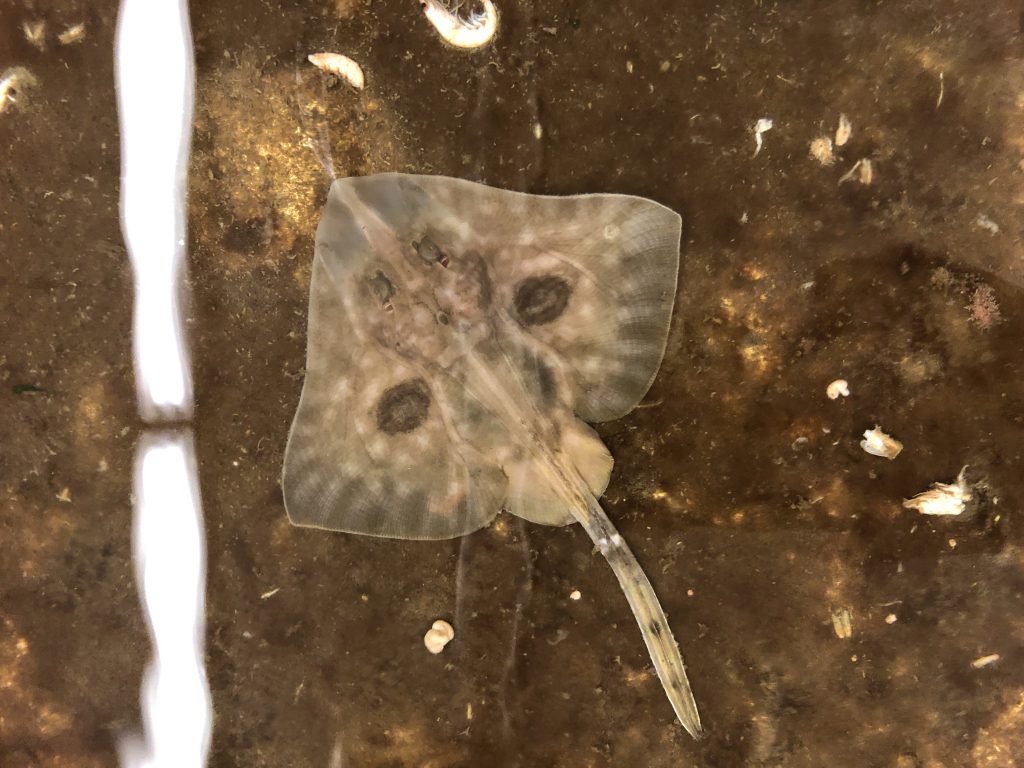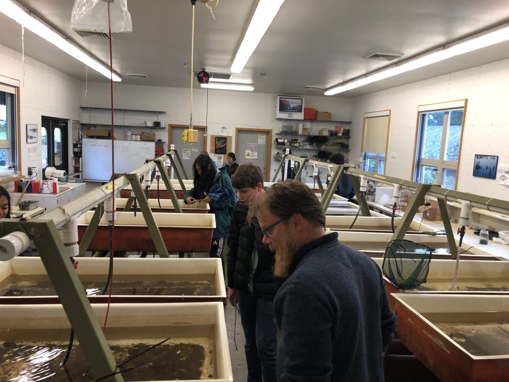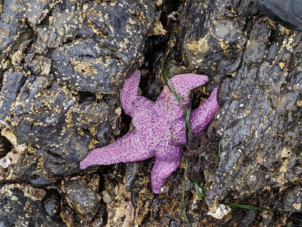 Then we arrived at the Friday Harbor Lab, it wasn’t the most comfortable walk I’ve had in my life because of the rain, but the beauty of the forest on our way there made it a quite enjoyable experience. We split into different groups after the arrival, some dedicated themselves into the collection the lab have in the library, some went to the fish lab with Derek, and some went to explore the tide pools. In the lab, there was that hideous looking fish we found two days ago from the beach. There were also other fascinating fishes in the lab like flounder and rockfish.