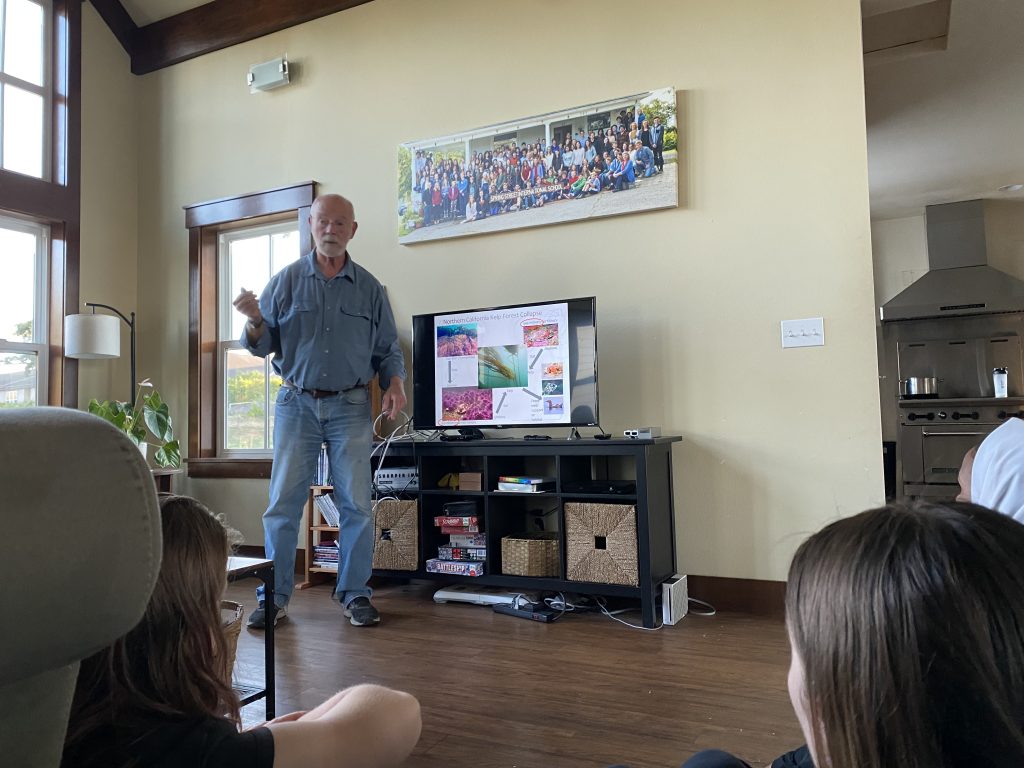 Our views and understanding of kelp definitely has grown over this evening. Dr. Mumford began the evening with his bold claim that kelp is the basis of the ecosystem in the Salish Sea. Kelp, a diverse group of brown seaweed, was one of the first things that we were introduced to when we began working in the intertidal zone. Their role as mitigators of ocean acidification is one that is often overlooked, despite the fact that they are essential to almost every organism that resides in the ocean. We are so thankful to have met with such an amazing and influential person tonight, and we’re sure to carry this knowledge with us into our future careers!