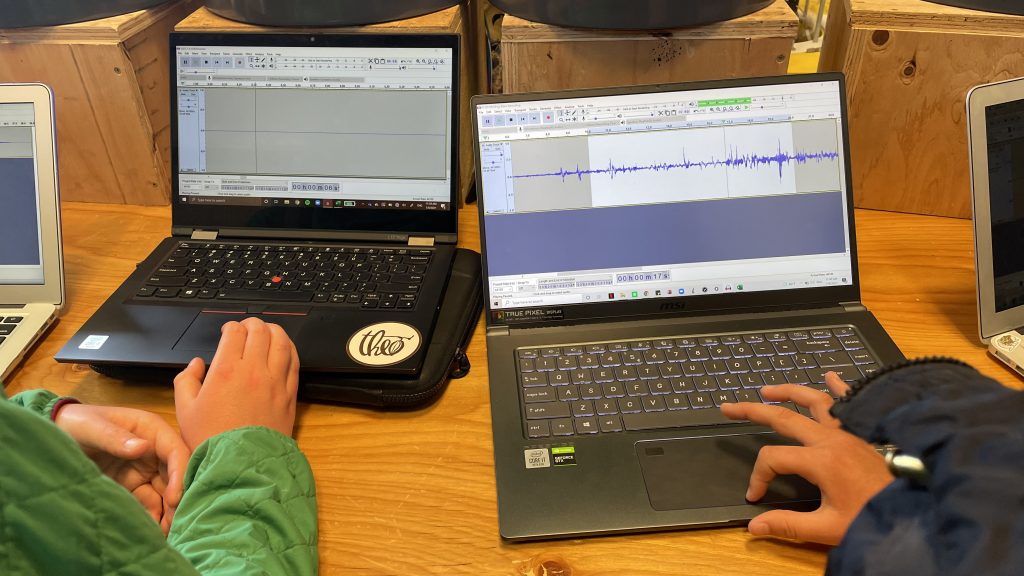 -Students calibrating sound waves on the Audacity program. Photos by Islay Ross