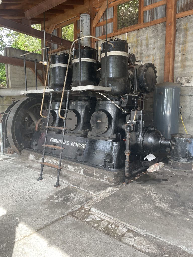 After the parade, we had lunch at the fairgrounds. There were pulled pork sandwiches and hotdogs along with chips and coleslaw, and the proceeds went to the Kiwanis club. We spent some time watching the games and hanging out before we headed back to the dorms once again to regroup. Soon after that, we all drove to Roche Harbor to see the log rolling competition and have more time off. There were a lot of people, but we managed to find a good spot to watch the competitions. We also found some time to sneak science in when we observed the organisms living on the Roche Harbor docks and compared them to the ones in Friday Harbor. It seemed that the organisms on the docks in Friday Harbor were bigger compared to the ones in Roche, but we’d have to find more data to actually prove it one way or another. Right before we left, we noticed some old generators and went to take a look. The people in charge of them were very nice. They explained how they worked and let us help to get them running.