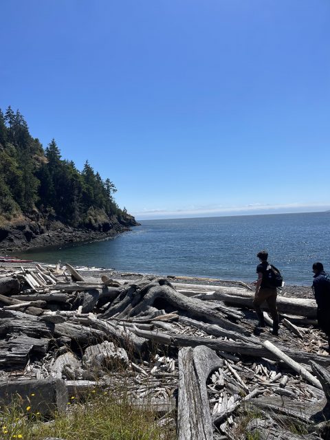 We were lucky to have our guide Alex with us able to answer the questions regarding the ecosystem we were seeing. When we first got to the beach, we noticed the abundance of barnacles. As we began to explore further, we saw sea cucumbers, sea anemones, crabs, chitons, sea stars and even a bald eagle! We were able to identify the types of species more specifically with the help of our group and Alex.