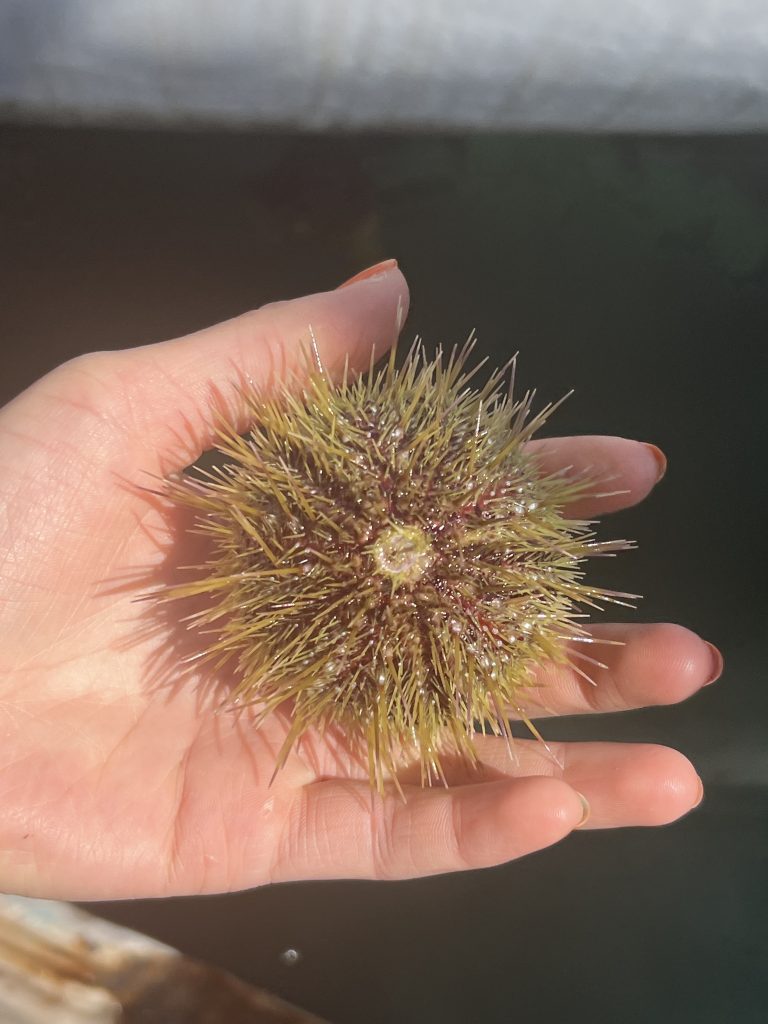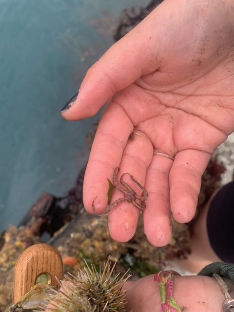 Pictured above is a brittle sea star that was found on one of the tires we flipped over. A green urchin is also shown, which we also put in the bucket. This was taken by Maddie.