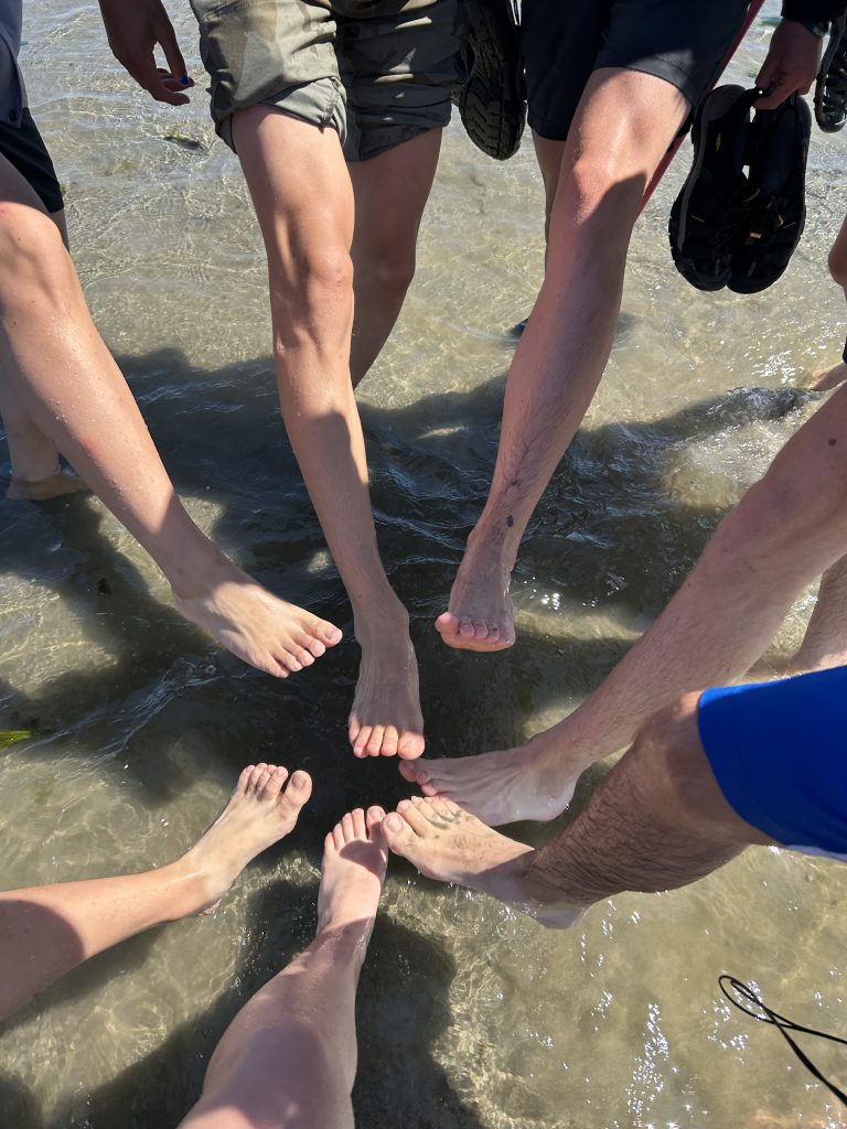 Even after an action-packed first day of paddling, setting up camp, and observing local wildlife, the excitement only continued to grow. The second day gave everyone a much-needed break from paddling. Paddling time was exchanged for time to explore the island and its many hiking trails. To start our day off, some of us decided to dock jump in the early morning into the freezing cold water. Despite the extreme cold, it did the trick and woke us up very nicely. Our main activity of the day was an extended walk from our campsite all the way to the lighthouse on the other side of the island. On the way to the lighthouse, our trails took us to a library/schoolhouse where we took a quick break to drink water, look at maps, and frolic in the meadow nearby. Flower crowns were made and modeled by all. Some people even used their free time to play some intense basketball games before we resumed our walk. When we finally reached the lighthouse we had great opportunities to look out at the ocean and explore the rocky shores. We also had lunch and toured some pretty mediocre museums detailing the lighthouse’s history and its keeper’s quarters. After we had our fill of the lighthouse we walked back and had the remaining part of the day to chill and relax. Some of us even named areas on the island such as the ethereal garden and the cliff of wisdom. The ethereal garden in particular was a great place to nap on the soft moss as several of us fell asleep in the evening sun. To end our day off, after dinner, we shone a light off the dock and observed some mating polychaete worms. We even saw some devilish raccoons peering at us from the trees with their beady little eyes and foul stares. Rest assured they would be dead if they had the courage to come down and face us for real.
