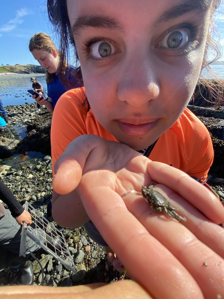 Finlee proving to everyone just how qualified (and excited !!) we were to be doing research with professionalsMy wonderful and experienced research partner Khadija demonstrated extreme professionalism in the fieldMe reallyyyyyyyy excited over a tiny crab kelp I found !! photo creds to Maddie 🙂The squad doing as the squad does: absolutely crushing it out in the field