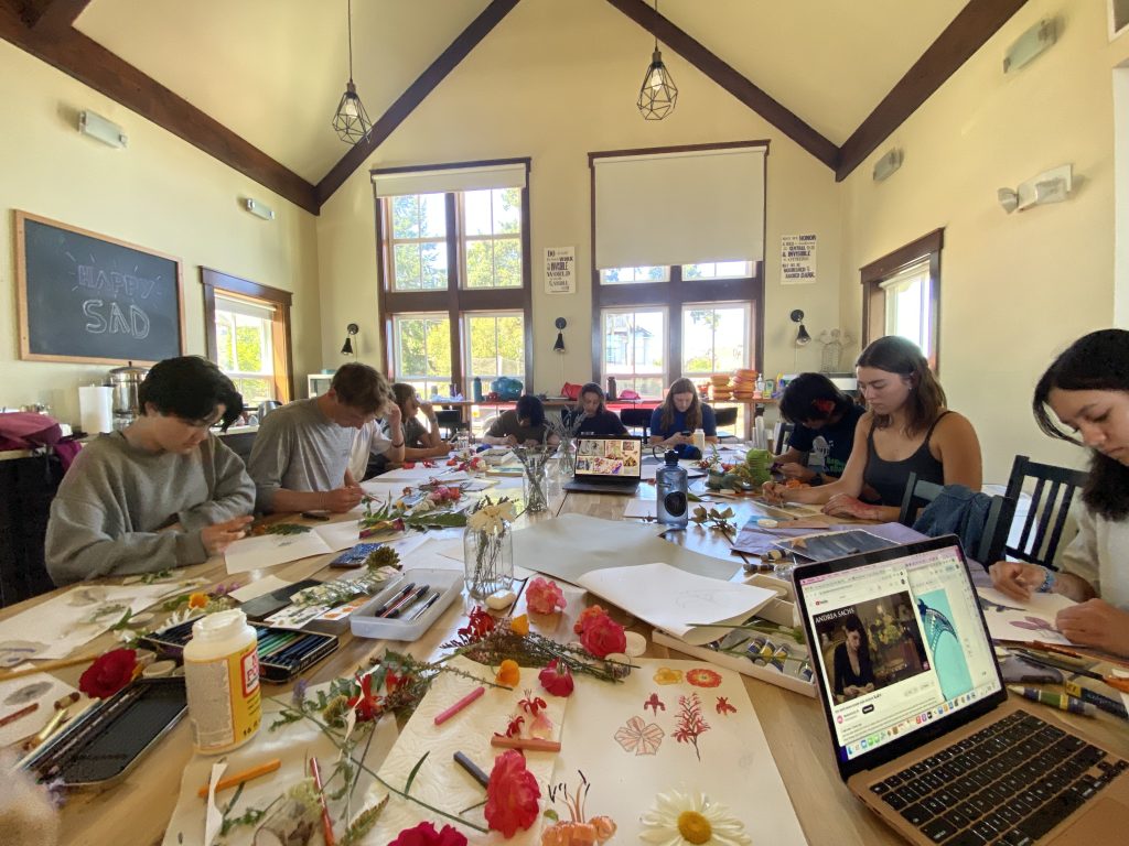 After our morning of walking and collecting data, we retreated back to the comfort of the house for a few hours. After an uneventful lunch and some time spent further developing project ideas, we were met with a welcome surprise as Islay, a former Salish Sea Sciences student came in to help us work on art and scientific drawings. While some of us certainly made more scientific drawings than others, at the end of our art time, we created some pretty awesome art pieces.