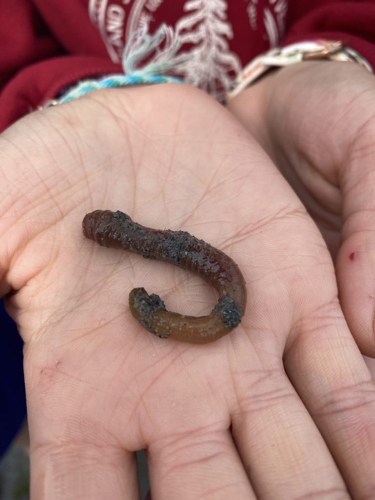 This is a lugworm. Head is to the top left and anus is the lower right. Since these worms clean the sand they ingest of bacteria and nutrients, their “fecal casts” contain cleaner sand then what is around them!