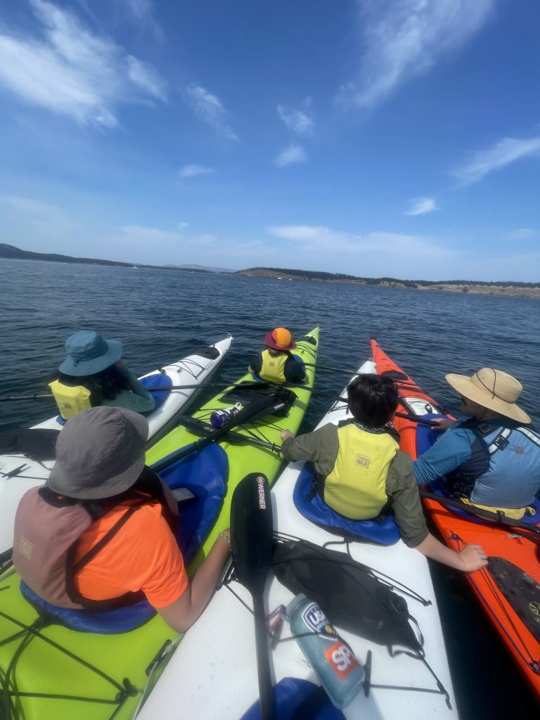 Well, it certainly has been a little while since the last blog post! These past 3 nights have all been devoted to a kayaking and camping trip. On our first day, we traveled from Roche Harbor to a campsite on Stuart Island. While the 7-mile paddle there proved to be arduous for some, the paddle was anything but uneventful. Prior to departing, many campers talked about how cool it would be to see orcas in the wild. In an extraordinary stroke of luck, the campers’ hopes were fulfilled as a roaming pod of transient orcas was spotted in the channel. On this ride to our campground, we also found a number of other interesting sea creatures. Harbor seals, harbor porpoises, jellyfish, and crabs were all spotted on our way to Stuart Island.