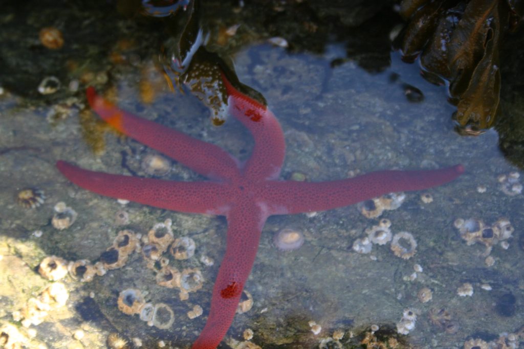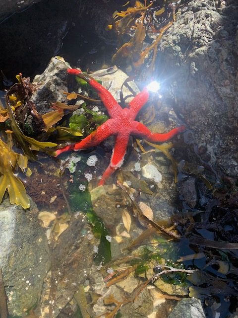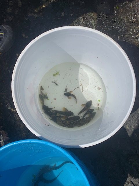 Pictured is a pacific blood star in one of the tidal pools. Picture taken by MaddiePictured are the fish we caught in our nets from the tidal pools. Most were released back while some were kept for furth research back at the labs. Picture taken by Maddie.