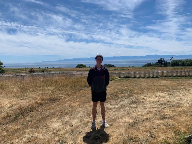 This destination was the Lime Kiln State Park also known as the “Whale Watch Park” due to it being known as one of the best places to whale watch in all of the San Juan Island. The park also has a rich history most commonly known for the beginning of lime kiln production. Caroline introduced us to Erin Corra who was a naturalist along with many past duties such as being the head director of Friends of Lime Kiln Society. As she took us through the park she quizzed us on many difference species of trees which Finlee answered all. Next, she took us to the watch point where there was many signs talking about the marine animals that passed through the Haro Strait. Many stops later we finally reached the main feature of the park, the lighthouse. Inside there were many displays of posters showcasing the vast history of the lighthouse and of marine life in the surrounding area. Unexpectedly, we were told that we could venture to the top of the building. We split in to groups for this due to the small staircase and size of the upstairs. From the top, we got a wider view of the area, being able to see much of Vancouver Island.