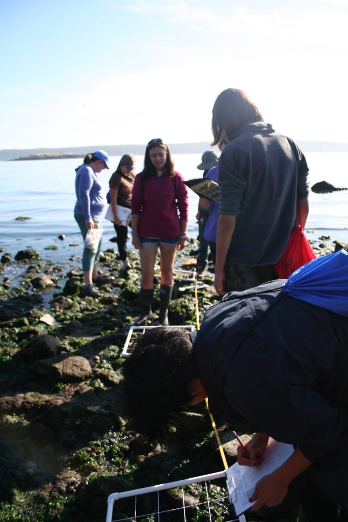 Salutations fellow citizens of our green world, it’s the students of Salish Sea Sciences writing yet another blog. Today was yet another eventful and action-packed day for us. The day started off a little early with a 6:30 wake-up call that I could only describe as harrowing for many of us tired teenagers. Despite this momentary challenge, we were all able to push through and commence our first activity of the day. We drove over to Cattle Point where we rendezvoused with Dr. Dobkowski, the scientist who spoke to us the night prior.