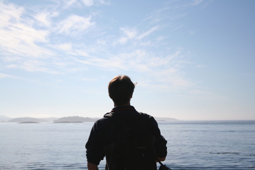 Pictured here is Tommy, and behind him the gorgeous panoramic view of the mountains across the water. Picture taken by Maddie.