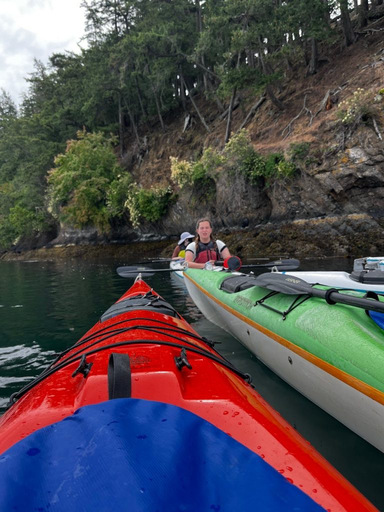 The group kayaked across the channel between Stuart Island and San Juan Island early to avoid bad winds coming in. We left at 8:30 and arrived at Friday Harbor around 11:30. Afterwards, the group crashed out at the dorms and watched “The Boys in the Boat” and various other television programs.