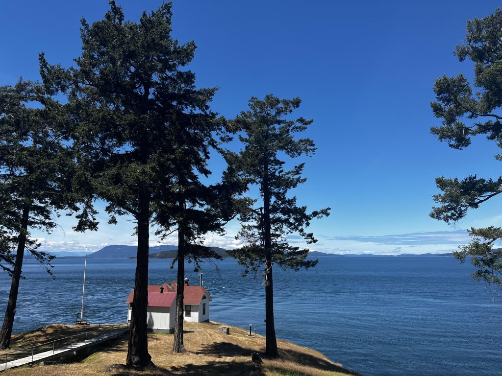 Group hike up to Turn Point Lighthouse on Stuart Island