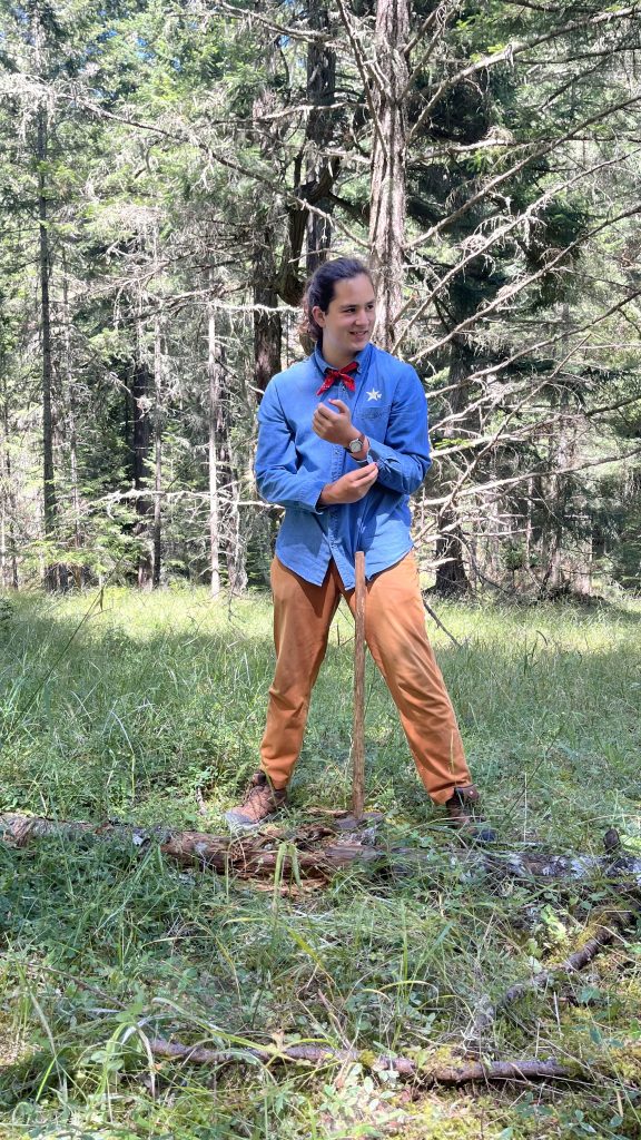 After a quick lunch of sandwiches at the dorms, we headed out to the island’s northwest side to help restore Garry Oaks in a protected forest. Why do we need to help these trees, and why are they important, you ask? Garry Oaks are an integral part of the San Juan ecosystem. This is because many other types of creatures rely on them for different phases of their life, and if we get rid of Garry Oaks, we destroy the habitats of hundreds of creatures in those forests. We spent a couple of hours using chicken fence to create a cage for Garry Oaks that would help protect them from deer. Caleb and Sid spent time hammering in rebar to keep the cages in place, and the rest of our group was very helpful with identifying Garry Oak saplings, making the cages, and placing them on the rebar. We learned much about forest ecology from Ben Halloway, a San Juan Land Steward who oversaw our restoration work. He talked about the thinning and self-thinning of trees and how we must cut down trees to help others grow. Riley gave us a great analogy- if there are too many straws in one cup, none of them get enough water.