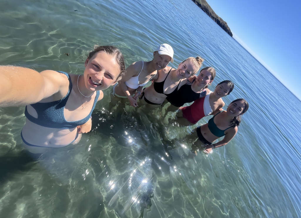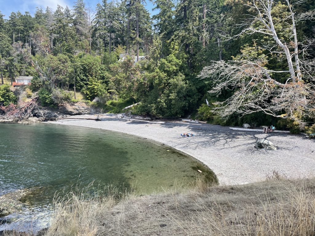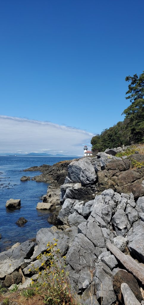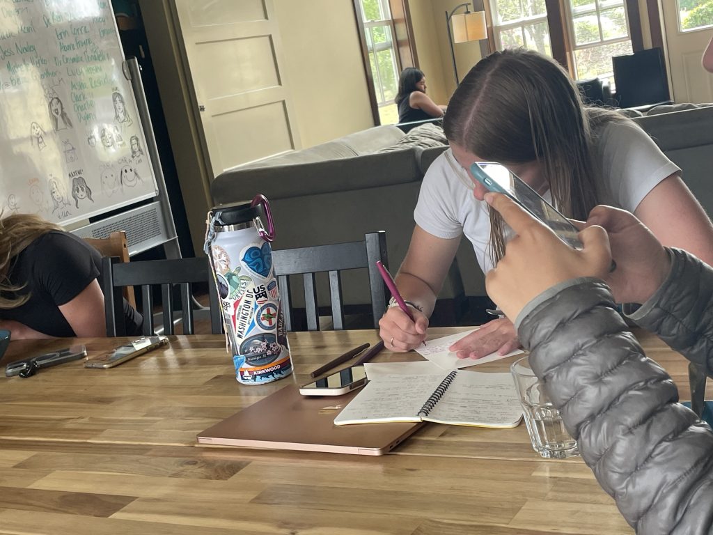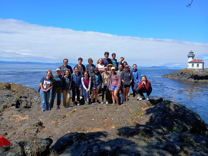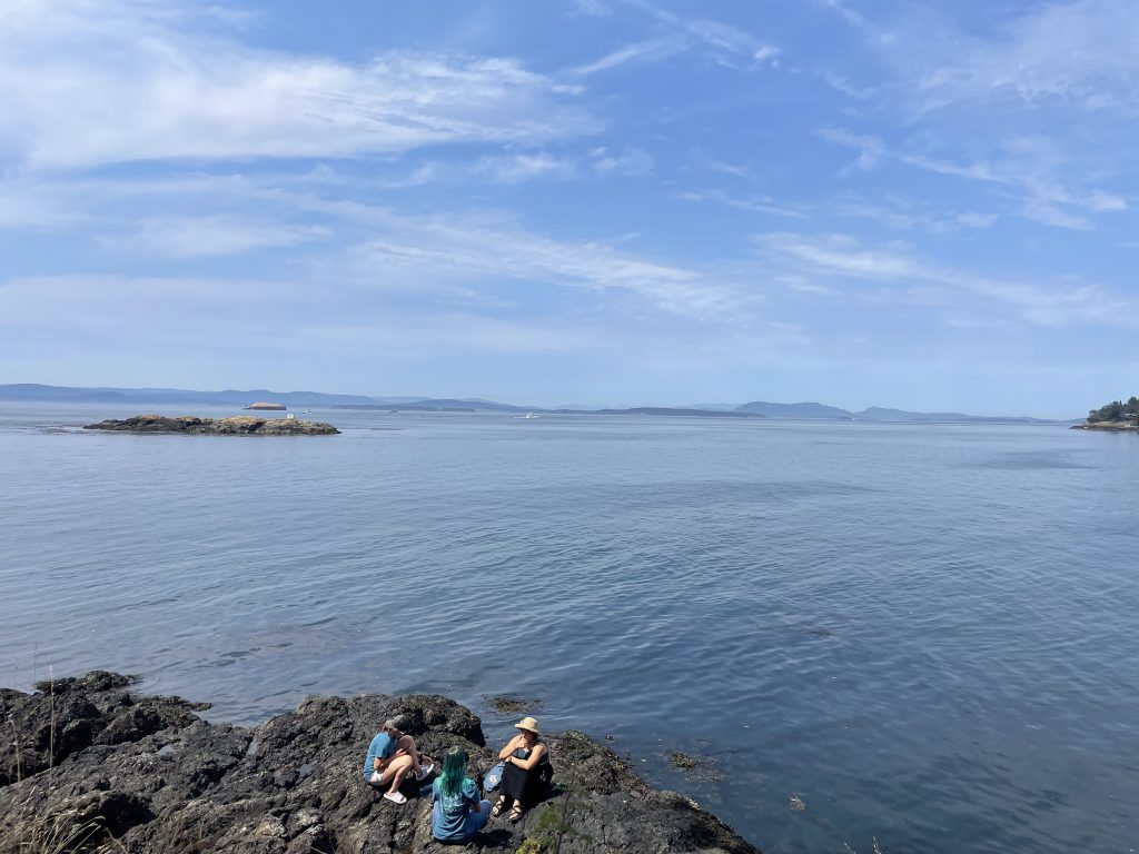 After working so hard on thank you cards, we replenished our energy with a final lunch. Many people chose to eat the leftover pasta salad. We then departed for a fun afternoon at San Juan County Park Beach, to loosen up for our presentation later in the afternoon. It was too cold to swim, so many of us chose to relax on the rocky bluff. When we were descending the rocky bluff, one of us tripped over a short king.