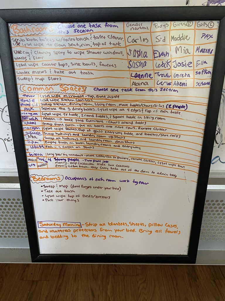 This morning we woke up to the pleasant surprise of a cleaning job sign up. We spent the morning hard at work cleaning every part of the dorms from top to bottom. We had to leave the dorms better than we found them, as the Spring Street students will be returning soon.