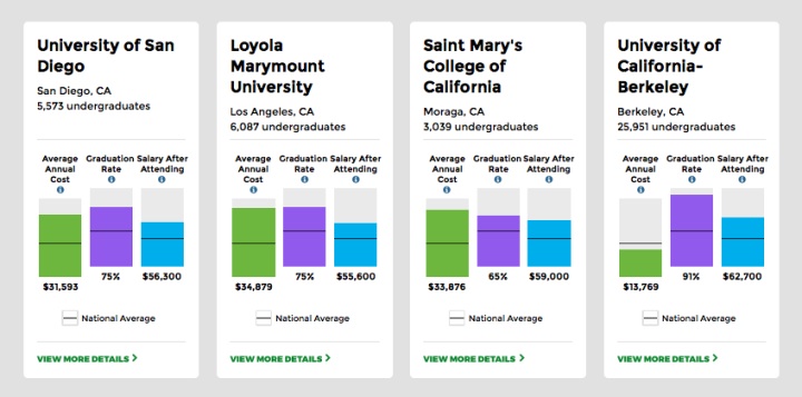 Launched on September 14, 2015, the Scorecard web app may lack the ranking component the Obama administration promised, but it nonetheless provides students and families with valuable information. Select a state, a program, a size and you get a reasonable number of colleges and universities to consider. Further refine your search by sorting the list by indicators such as average out-of-pocket costs for lower income families, graduation rates, and post-graduation earnings 10-years out. The only caveat is that you need to “read between the lines” (another issue of Spotlight explicitly addresses how to do this).