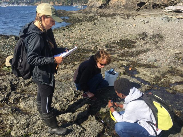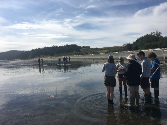 With guidebooks in hand, we identified every plant species our eyes could see; we were all clearly intrigued by the huge plant variety that we had overlooked this whole time. After developing a list of 30+ plant species, we did some biodiversity / density samples using quadrats along the fire road trail to try and find out a little more about the prevalence of the plants in the San Juan Island forest. Upon returning to the dorms after our enlightening walk under the beautiful trees of the Pacific Northwest, we collectively input our data into a spreadsheet to record all the information we had observed.