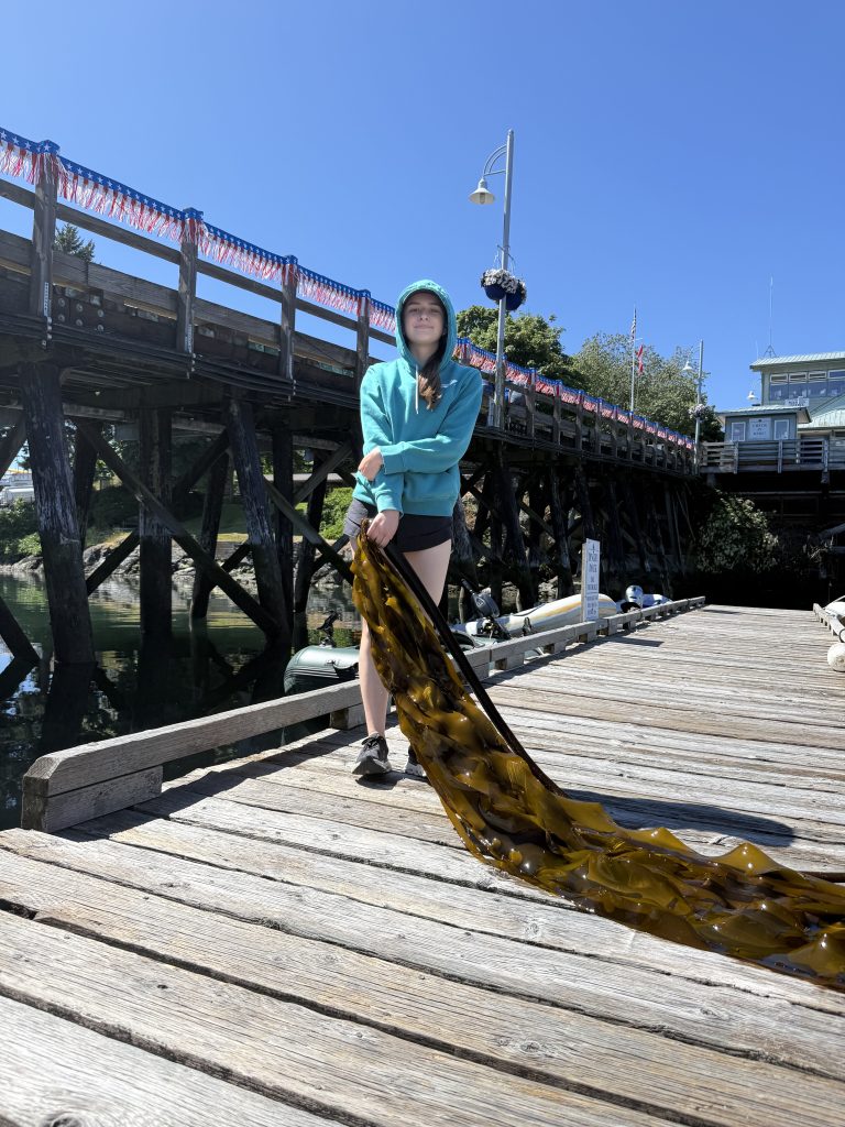 Fouling anemones (photo by Hitomi)Egg yolk jellyfish (photo by Trevor)Ella holding Bull Kelp (photo by Hitomi)