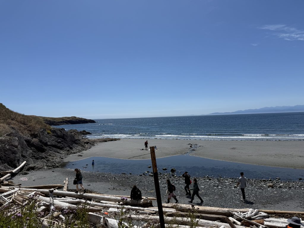 The dorm woke up to beautiful sunny weather and the breakfast crew’s spread of scrumptious cereals, yogurt, granola, bread, and fresh berries. Some eager folks went out for a quick morning workout, while others helped themselves to coffee in the area. First, we were introduced to the structure of our Pilot Project and shown examples from past years projects. Maya and Riley led a tour of our on-campus lab, which will act as a workspace for some over the next 4 weeks, and shortly after, we were delighted by Adam’s “Phyla of the Salish Sea” presentation. We gained base-level knowledge of local marine organisms, which was later used to explore the tide pools at Deadman’s Cove.