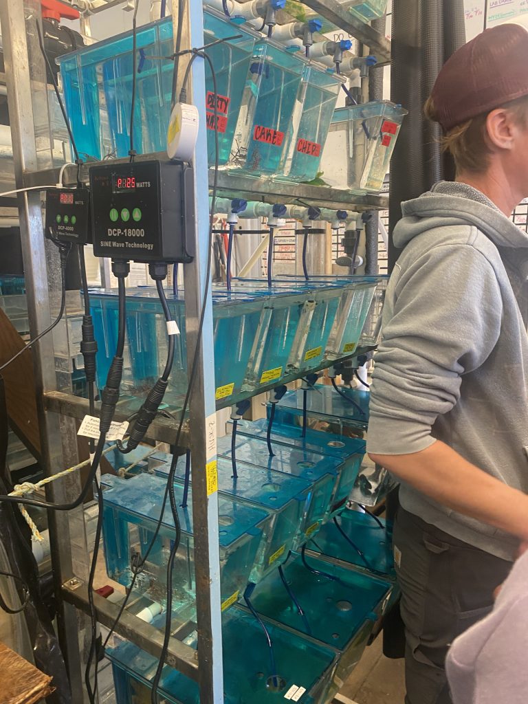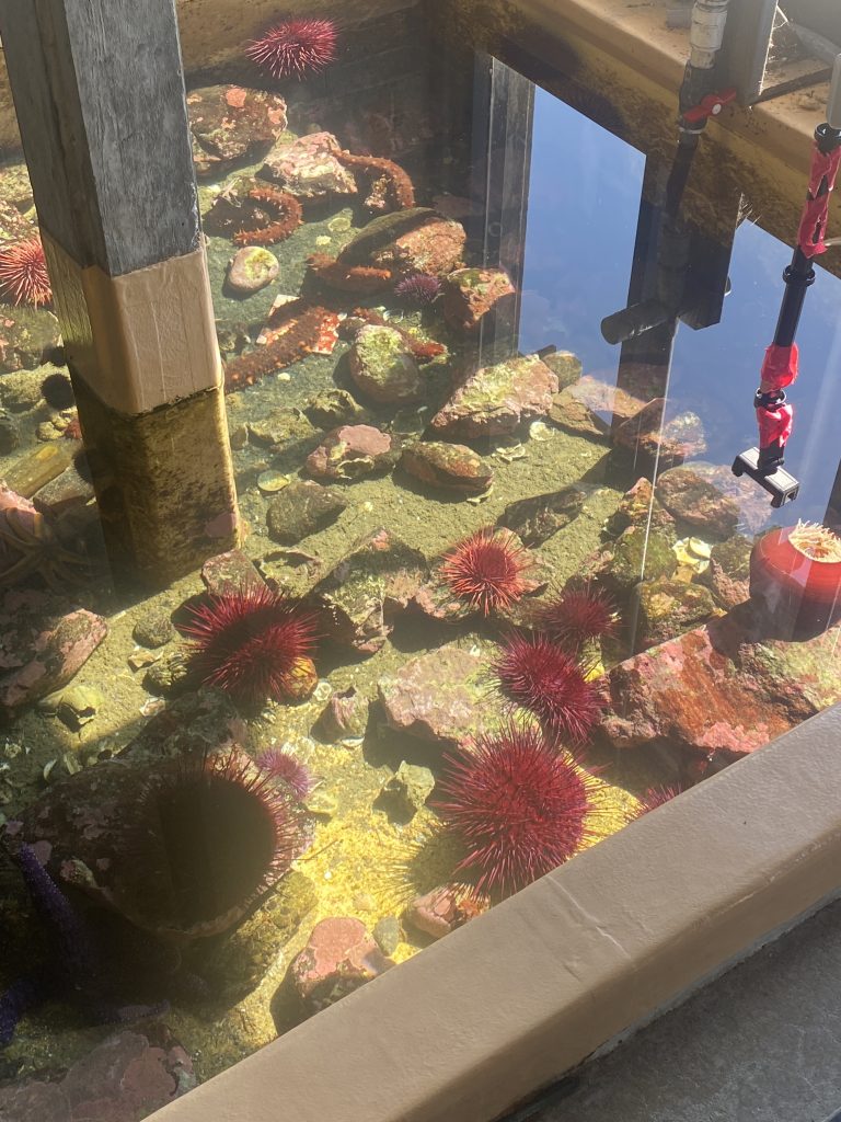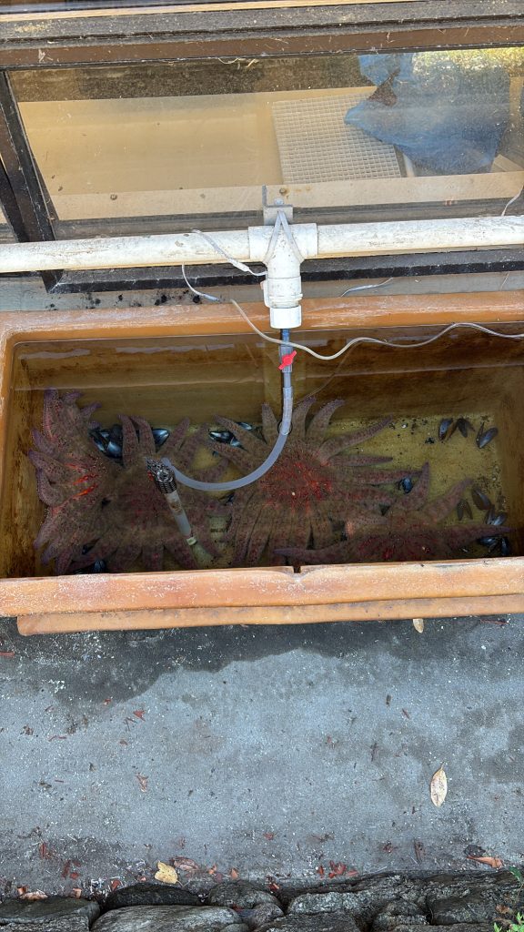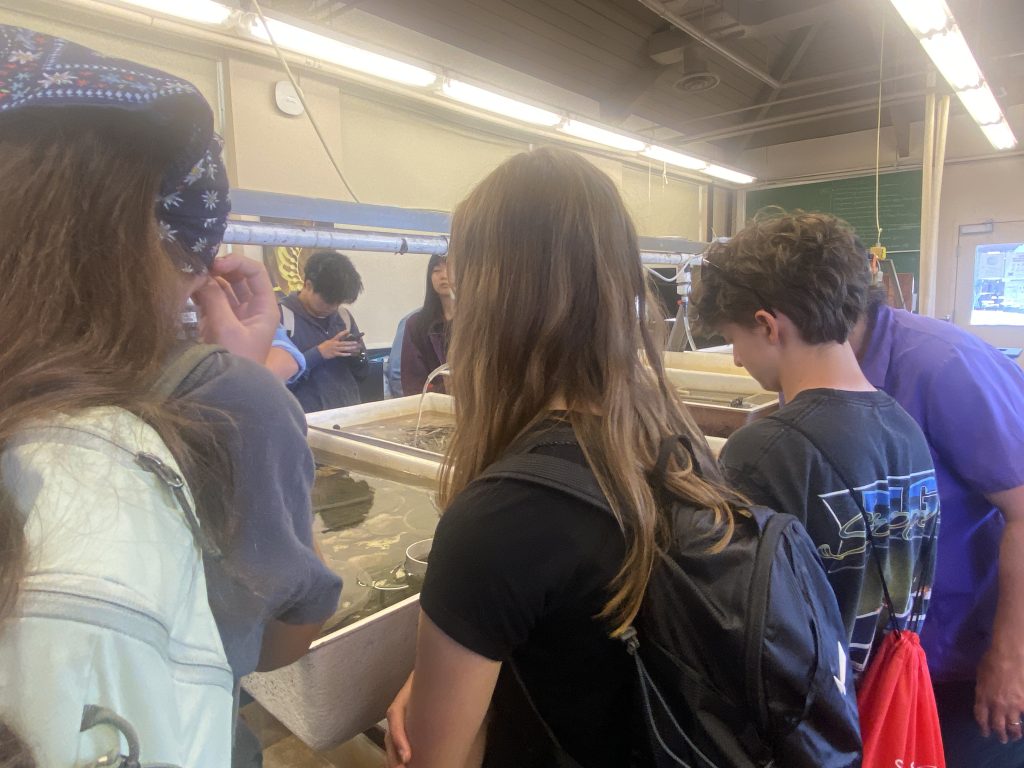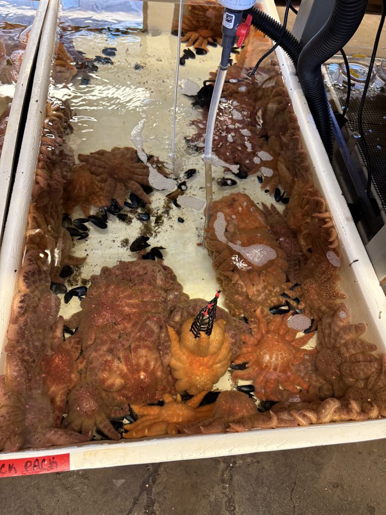Another group was led to the sea star sanctuary where students learned about the research and restoration of the local sunflower sea stars (Pycnopodia helianthoides). Following a dramatic heatwave in 2014, these vital organisms have been plagued by Sea Star Waisting Disease (SSWD) and researchers have been working to restore the population and unveil the cause since 2019.
