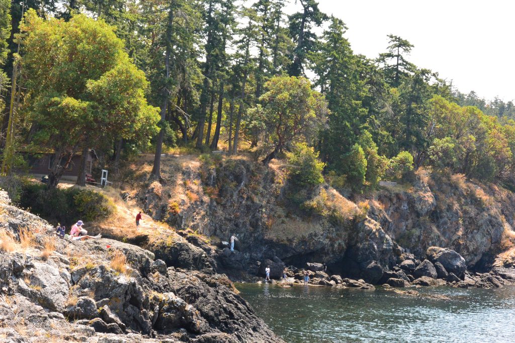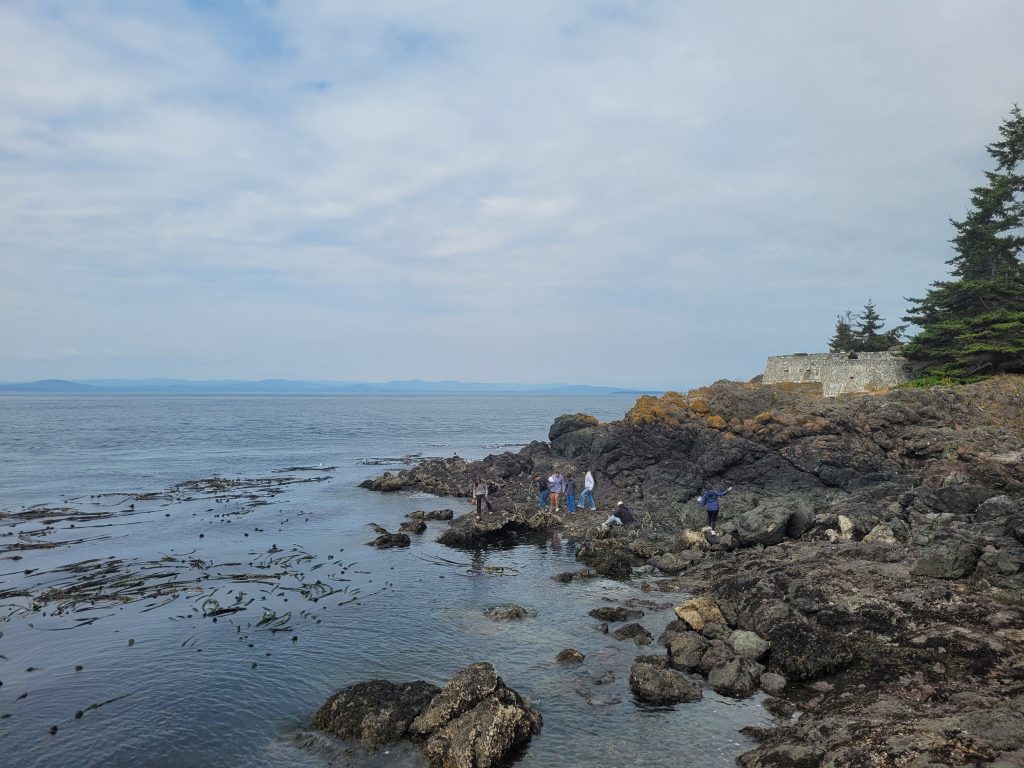 We packed our lunches and went to San Juan State Park on the west side of the island. We enjoyed our lunches with an awesome view of Vancouver Island across the water. Many of us decided to go exploring across the rocks down to the shore.