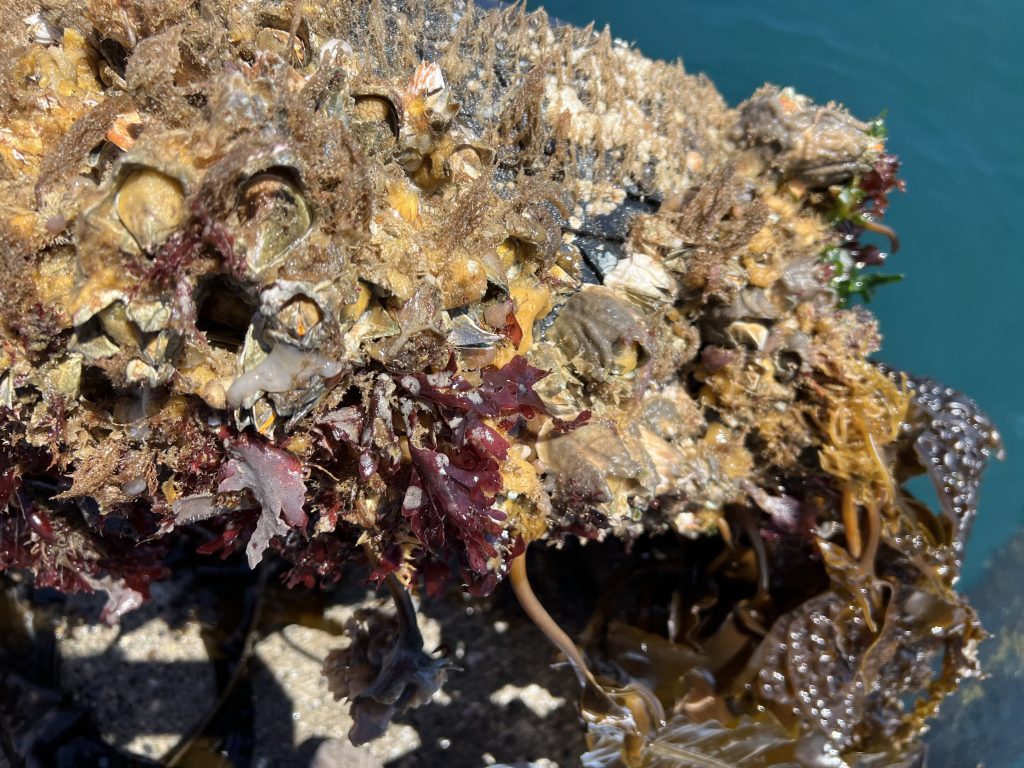 A close up of some of the life found latched onto a dock tire. Photo credits: Kaia Wasserman.Active barnacles students were lucky enough to see. Photo credits: Amber Xu.