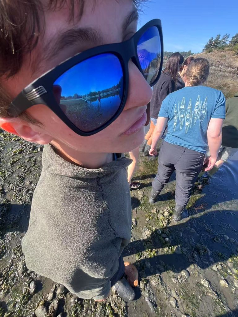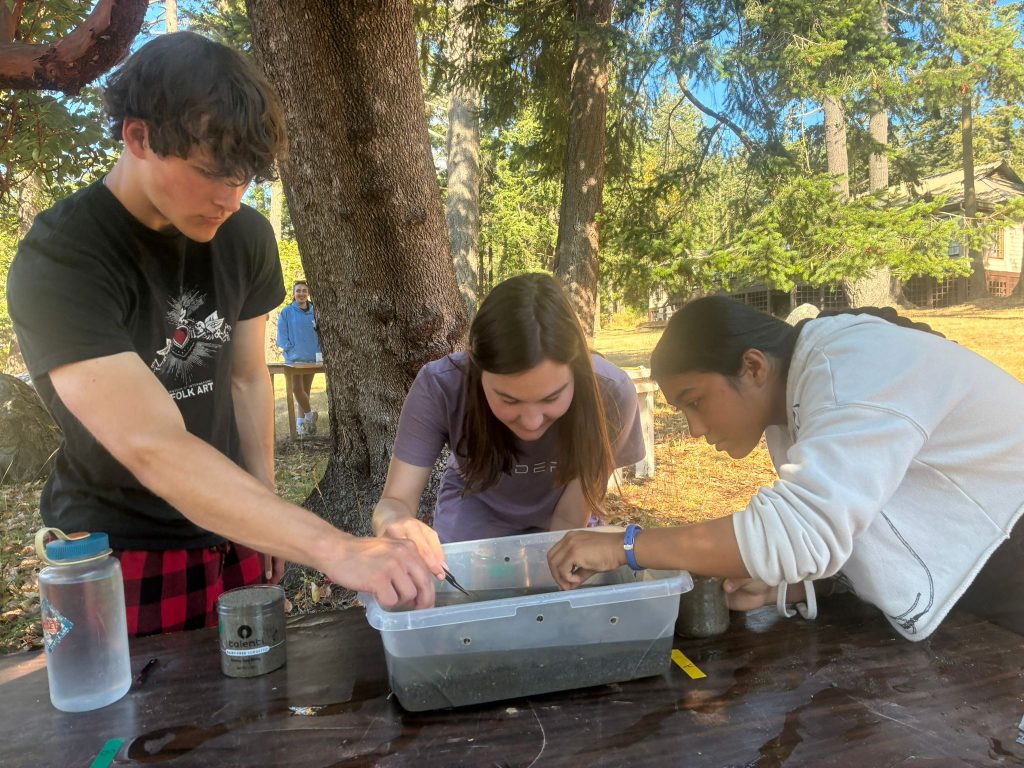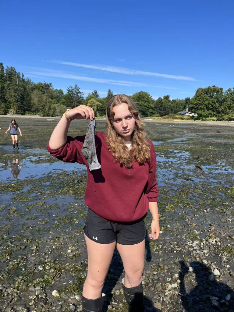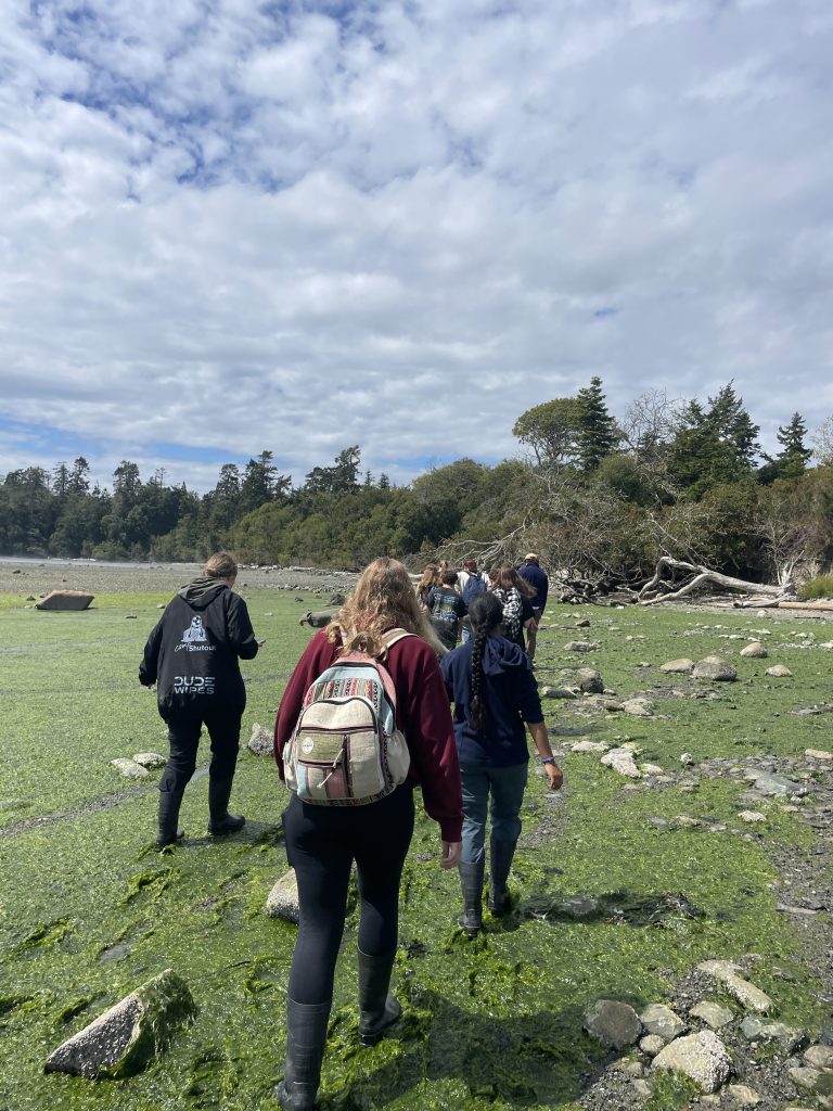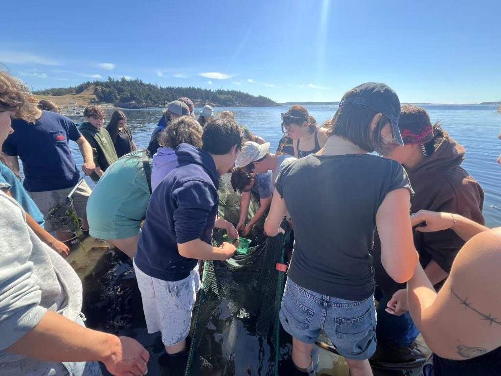 In the morning, the group made another trip to Friday Harbor Labs, where they participated in the conservation and research of eelgrass. Here, they met up with conservation research scientists Mitch and Sage to assist in their ongoing project.