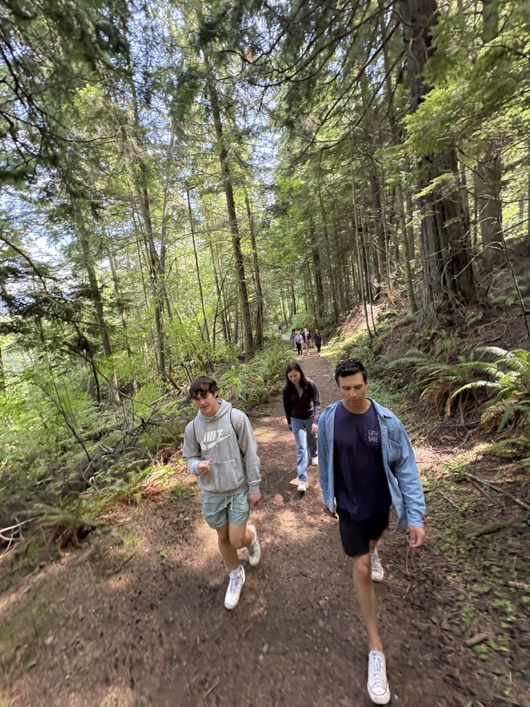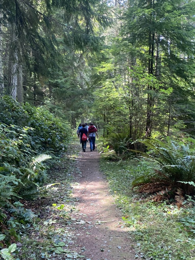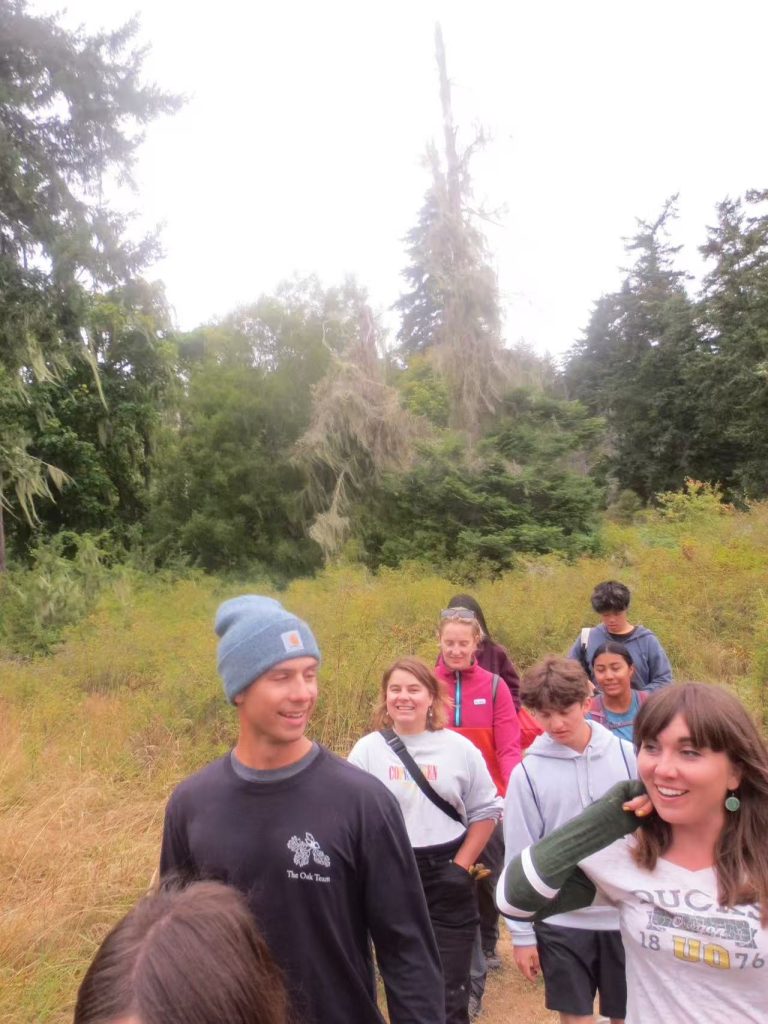 Next, we drove to Lime Kiln Point State Park to meet Errin Corra, the creator of the non-profit, FOLKS-Friends of Lime Kiln Society, as well as Josiah French-Feld, a member of the indigenous Coast Salish peoples. We received a tour of the park, learning about a few different tree species and their connections to the local indigenous culture. We ventured down to a whale-watching lookout, where we were swarmed by wasps! Then we checked out the lighthouse nearby, hearing about the history of the building and their whale tracking system. We were able to go to the top of the lighthouse, and from there we could see the hydrophone cable, allowing the researchers to hear the nearby underwater sounds.