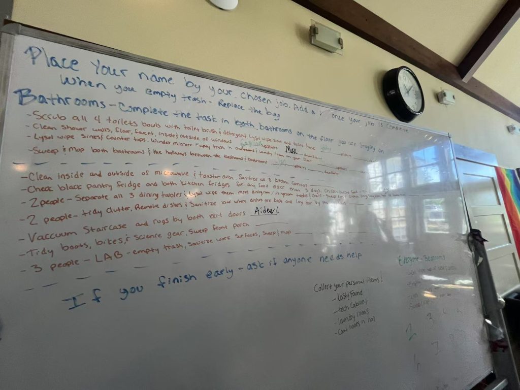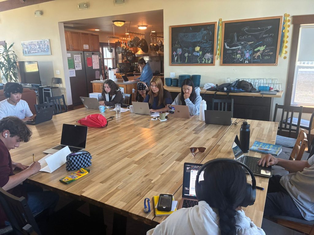 After working on their tasks for the afternoon and enjoying the town, the students enjoyed a pesto pasta salad with watermelon, tofu, and chicken with the company of Dr. Mike Kuperberg. He was a biologist at Florida State University for 25 years, with 20 years of experience in the U.S. Department of Energy’s Office of Science. Now, Dr. Kuperberg is the executive director at the Whale Museum with the goal of educating his community through the power of storytelling. After the presentation, the students enjoyed their final night together as a whole group!