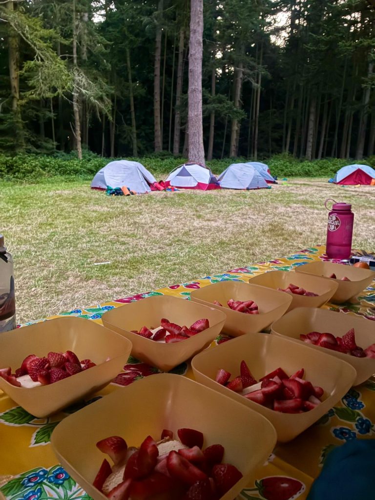 Strawberry pound cake dessert at the campsite on Jones Island. Photo credits: Sophie