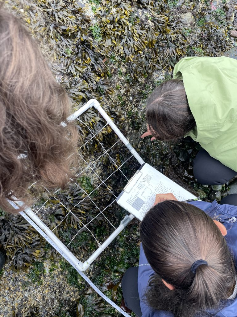Our day started with a van ride to Cattle Point to conduct algae surveys on the behalf of Dr. Katy Dobkowski. Working in groups of 4, we trekked across beds of seaweeds and clamored over algae covered rocks. Our groups were hard at work cataloging the density of different species of algae. All the data will add to an important data base, and aid Dr. Dobkowski in her research.