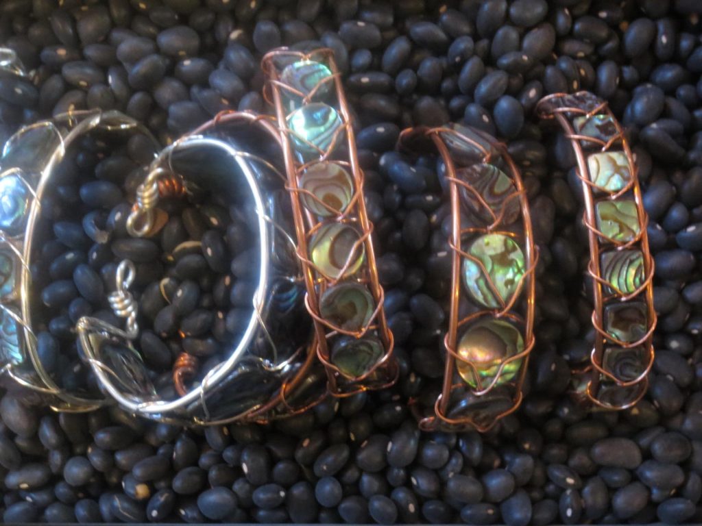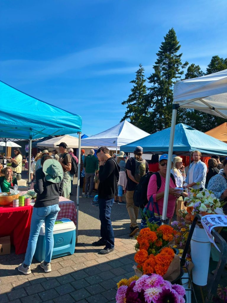 A crowd of people gathered at the Friday Harbor Farmer’s Market. Photo credit: Sophie Bracelets from a local artist’s stand at the farmer’s market. Photo credit: Bryce