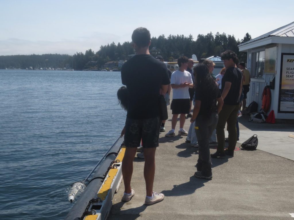 After lunch, the student body went to the docks at the Port of Friday Harbor to collect some water samples for the Plankton lab! Using a specialized net, the group siphoned samples of water into a bucket to take to the lab. In these samples, many different varieties of plankton were gathered; plankton are small marine organisms that are crucial to life beneath the sea.