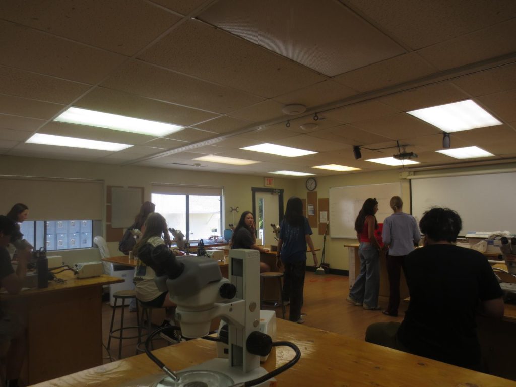 Unusual microorganisms were found in water samples taken by the students at the docks and taken back to the lab; with the help of a microscope, the students were able to see unique types of zooplankton and phytoplankton. Pipets drew the water from the sea which was placed on stages that were then examined underneath the microscopes. Many different species of microorganisms were found using this process as the students took notes and sketched what they saw.