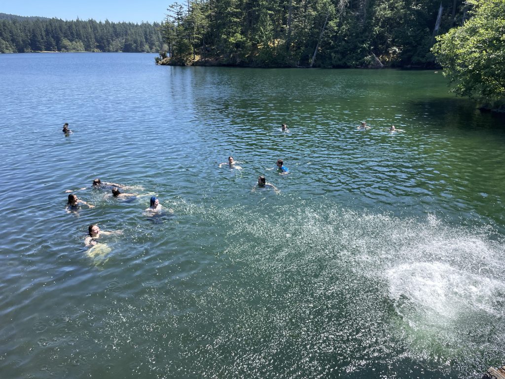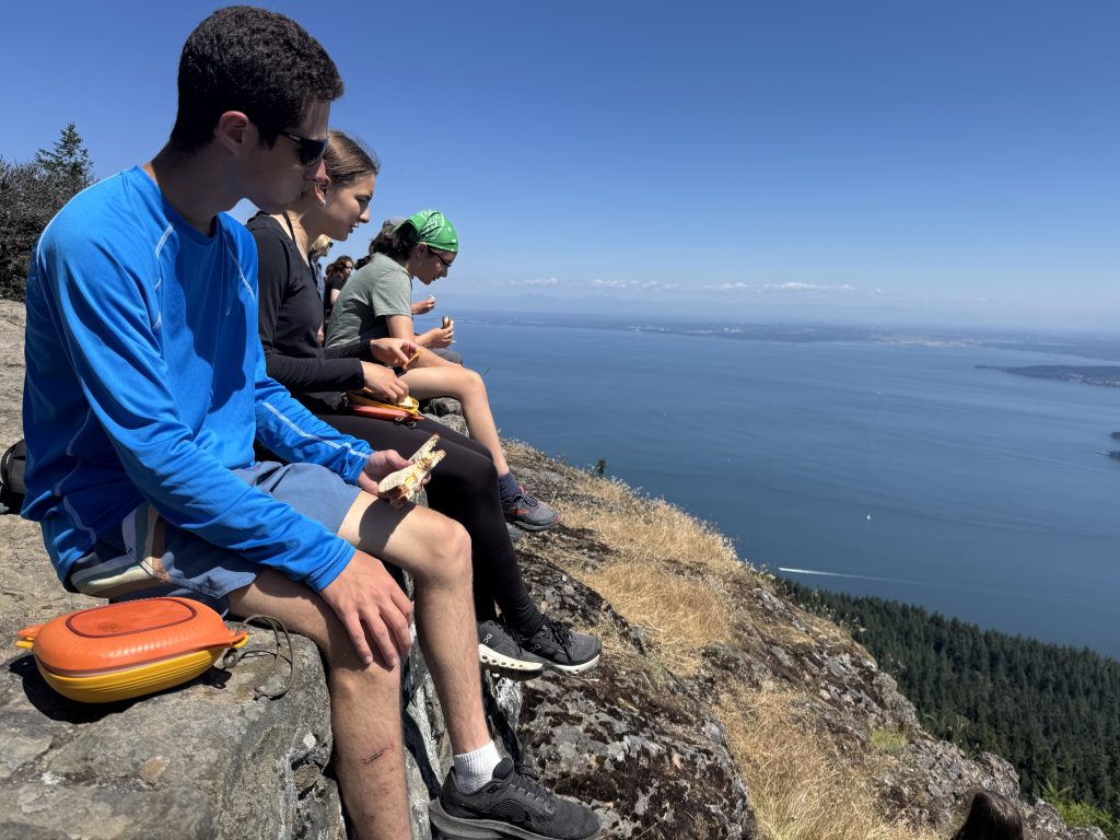 Ringing met us as we awoke to start a new day. Many alarms and sleepy faces rose from bed covers as everyone headed down for a horribly early 7am breakfast with 30 minutes until the vans needed to be loaded. Today, we headed to Orcas Island via the ferry for some much-needed R&R after many hours of project work time (some having more fun than others). It was an interesting morning that led into an amazing day hiking, eating, and swimming.