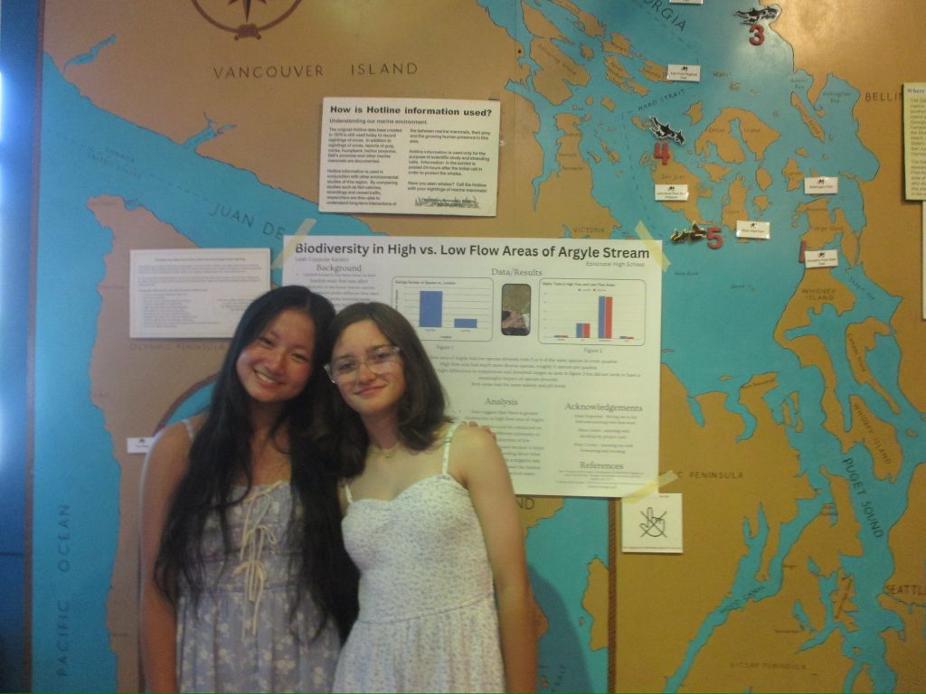 For the first time ever, the project symposium was being held at a very special place. Whale Museum Research Director Jessica Farrer (who had had dinner with us earlier) invited the idea that our program share our posters to the scientific community, our parents, and the public at The Whale Museum! This is such a huge step towards furthering our understanding of youth science communication, and I was honestly stoked we could make it happen! At 5 pm it started. Quickly the room filled up with mentors, families reunited, and friends from all around came together. It didn’t feel like a room full of strangers, it felt like a room full of knowledge, and appreciation, and science.