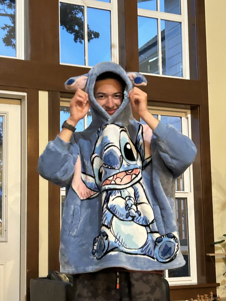 Noam looking so kawaii in Cara’s Stitch hoodie (Photo by Harper)