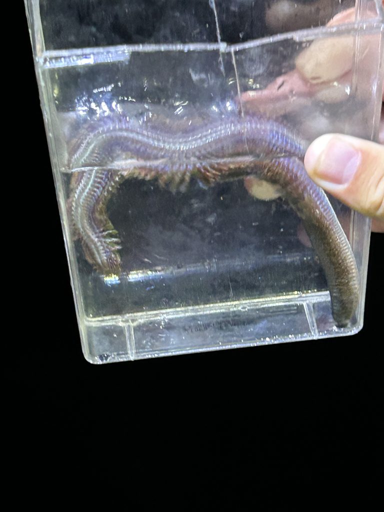 Huge marine worm captured on the dock (Photo by Harper)