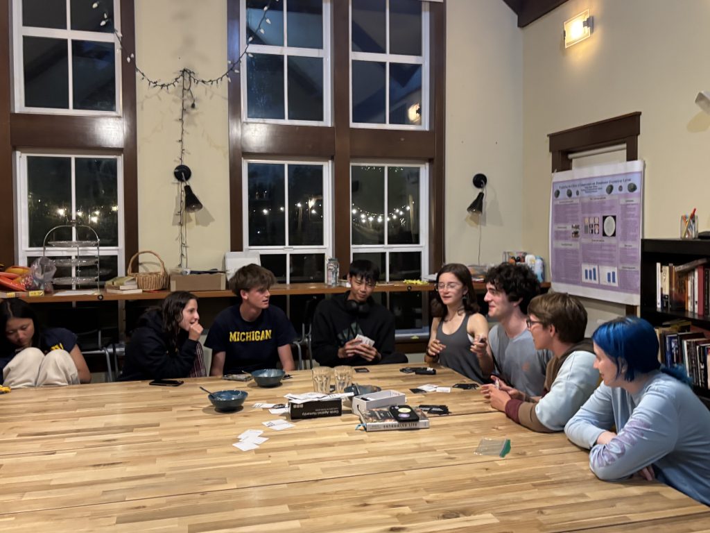 For our delicious dinner of vegan chili, we were accompanied by Katherine Dietzman, a shoreline and mapping specialist working with Friends of the San Juans (a non-profit organization dedicated to protecting the San Juan Islands). She talked about the work she does with Friends of the San Juans, including shoreline restoration and looking at forage fish. Our evening ended with ice cream, The Lord of the Rings, Cards Against Humanity, and other fun activities.