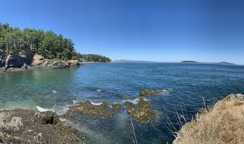 Speaking of lunch, after the hike, we made our way back to the vans and made our way to one of the most beautiful views on the island: Mount Constitution. A windy road later, we were at the mountains’ summit and the highest point in all of the islands. We ate lunch quickly while bald eagles and hawks flew around and above us. Then, we prepared for the highlight of the whole day. It was time to swim.
